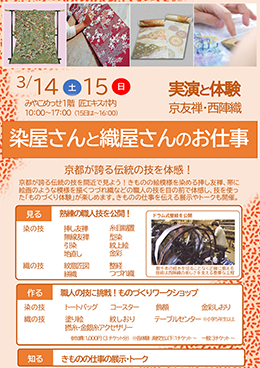 | 内 容 | 「染屋さんと織屋さんのお仕事」 ~京友禅・西陣織の実演と体験~ |